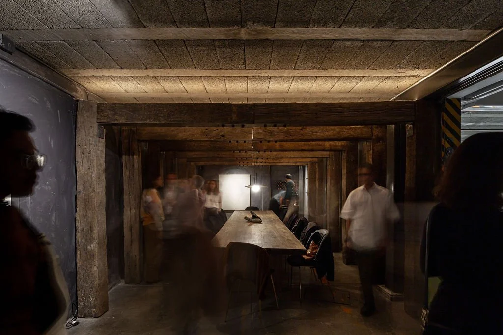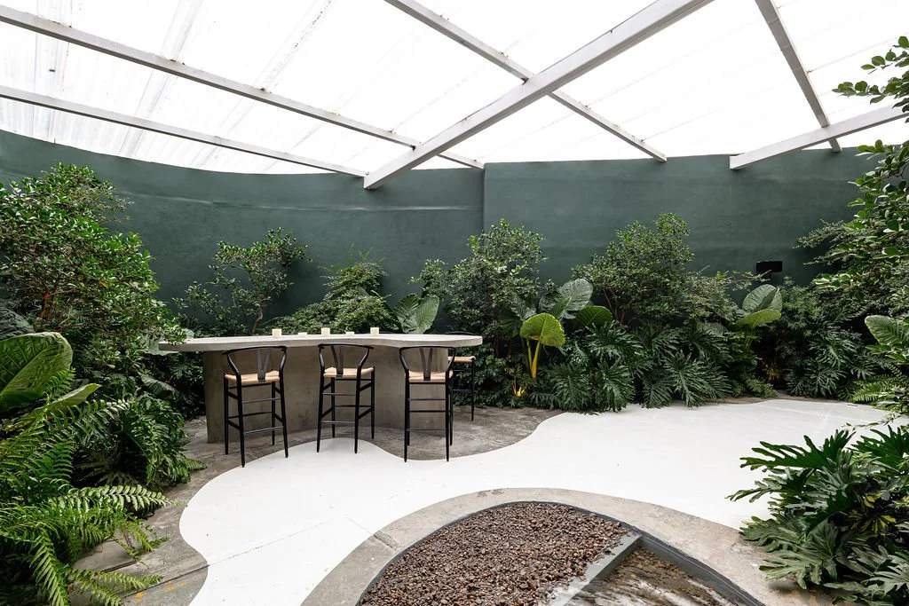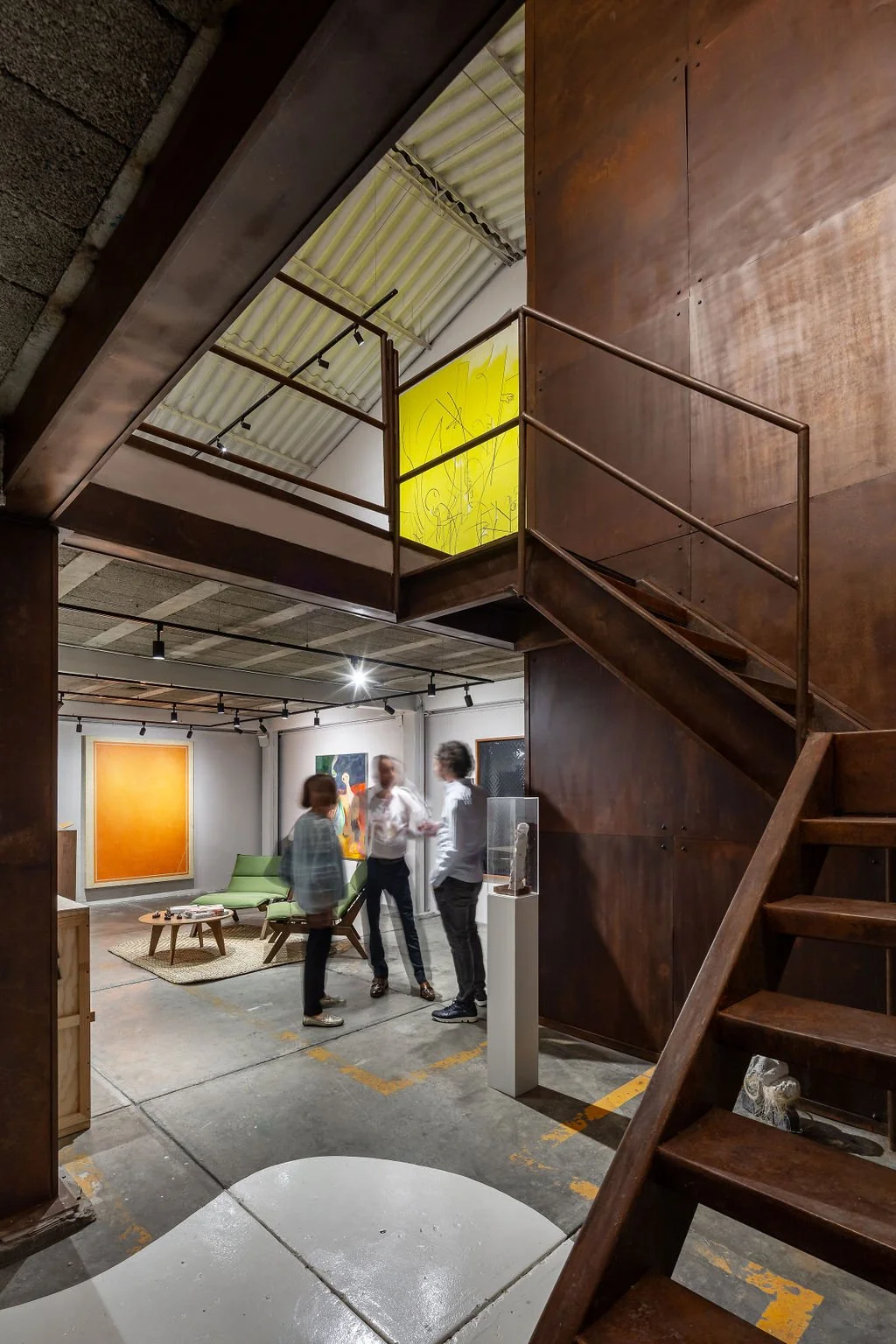 El programa cuenta con un espacio de cocina / laboratorio, en donde se genera una convivencia al cocinar, pero que también se convierte en la mesa de un taller. Un espacio de comedor, donde se sientan los individuos, sus relatos y sus aspiraciones; los alimentos y el arte a la mesa. Se generó una secuencia de marcos de madera reciclada que dan escala e intimidad al espacio, permitiendo que el arte y la conversación sean los protagonistas sin distracciones. Un elemento de piedra, funge como vestíbulo al jardín que anteriormente era el patio de maniobras, así como al segundo piso; esta pieza se presenta como un elemento de transición entre el afuera y el adentro, como un objeto que busca cargar el peso de las narrativas que ahí se exhiben y que, a su vez, se siente inacabado, haciendo referencia a las posibilidades del lugar, a la colección dinámica y la incompletud de los discursos que la bodega alberga. Se plantean dos espacios de exhibición para una colección privada, de igual manera, un espacio de biblioteca, funciona como un lugar de consulta y resguardo para la intimidad y la cercanía entre las personas y los discursos que posibilitan las piezas. En esta estética de lo inacabado, se generaron aberturas, y adaptaciones que buscan presentarse sinceras, como se trabajaron en el proceso de obra, buscando que, de esta manera, se lea en el espacio la transformación de la bodega a lugar de compilación de arte y de vivencias. El área de jardín, busca ser un espacio verde y vibrante en la inmensidad de la construcción, que se cierra al exterior de la calle pero que se abre a la inmensidad de las nubes.
