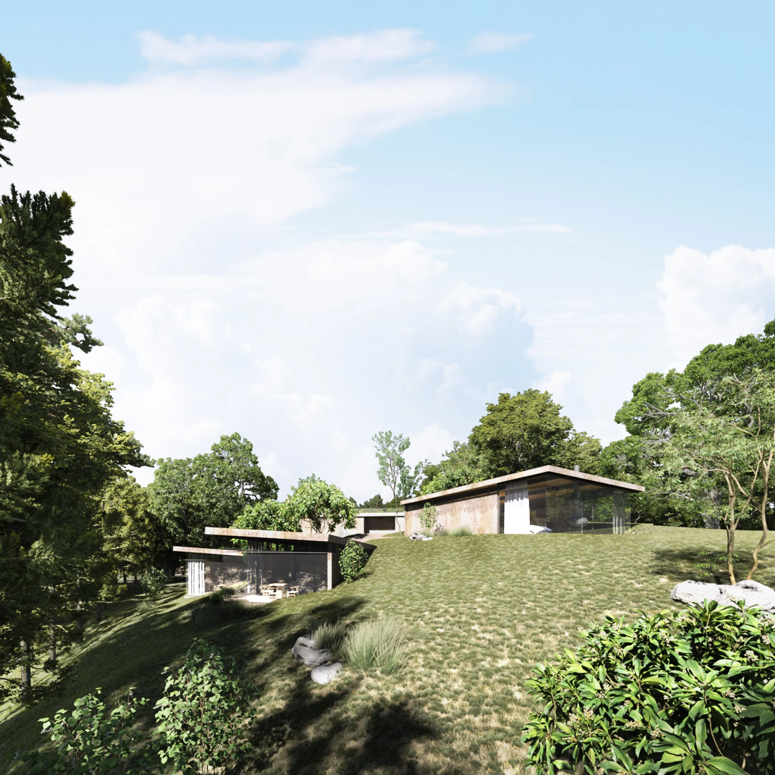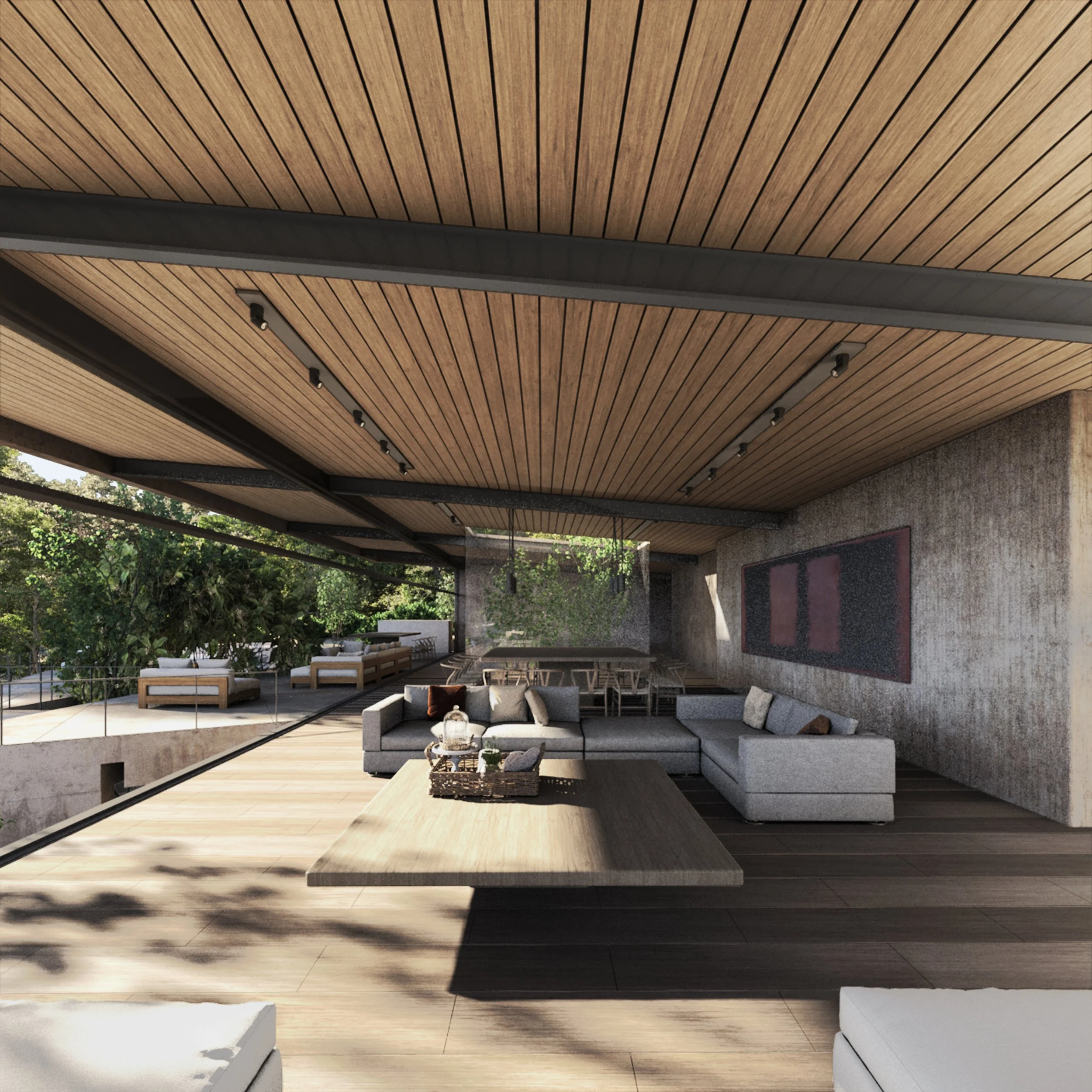 El proyecto, además de la casa, salón de juegos, terrazas y habitaciones, tiene caballerizas, cancha de padel, alberca y jacuzzi, huerto, y muchísimo jardín. Se propone integrar la arquitectura al terreno, enmarcando las vistas desde todos los espacios del proyecto.